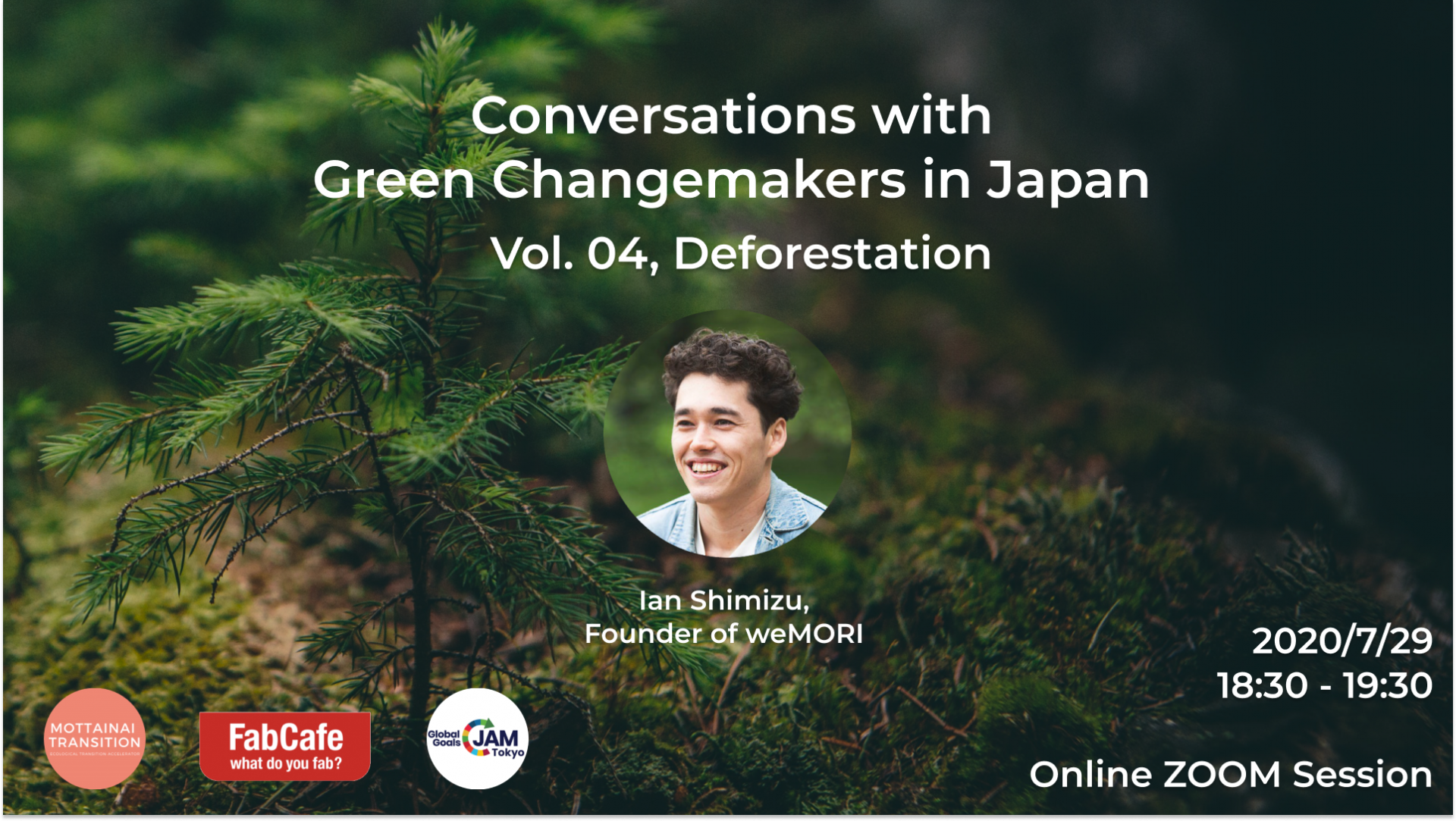 What is the the power of forests to solve climate change? What kind of vulnerabilities and power exists in environmental action? What can digital action can we take for a regenerative future? We welcome guest speaker Ian Shimizu, Founder of weMORI – a recently launched an app that makes protecting and restoring forests fun, easy and accessible for all, to tell us about his experience and expertise on the topic at Vol. 04 of the “Conversations with Green Changemakers in Japan” series.