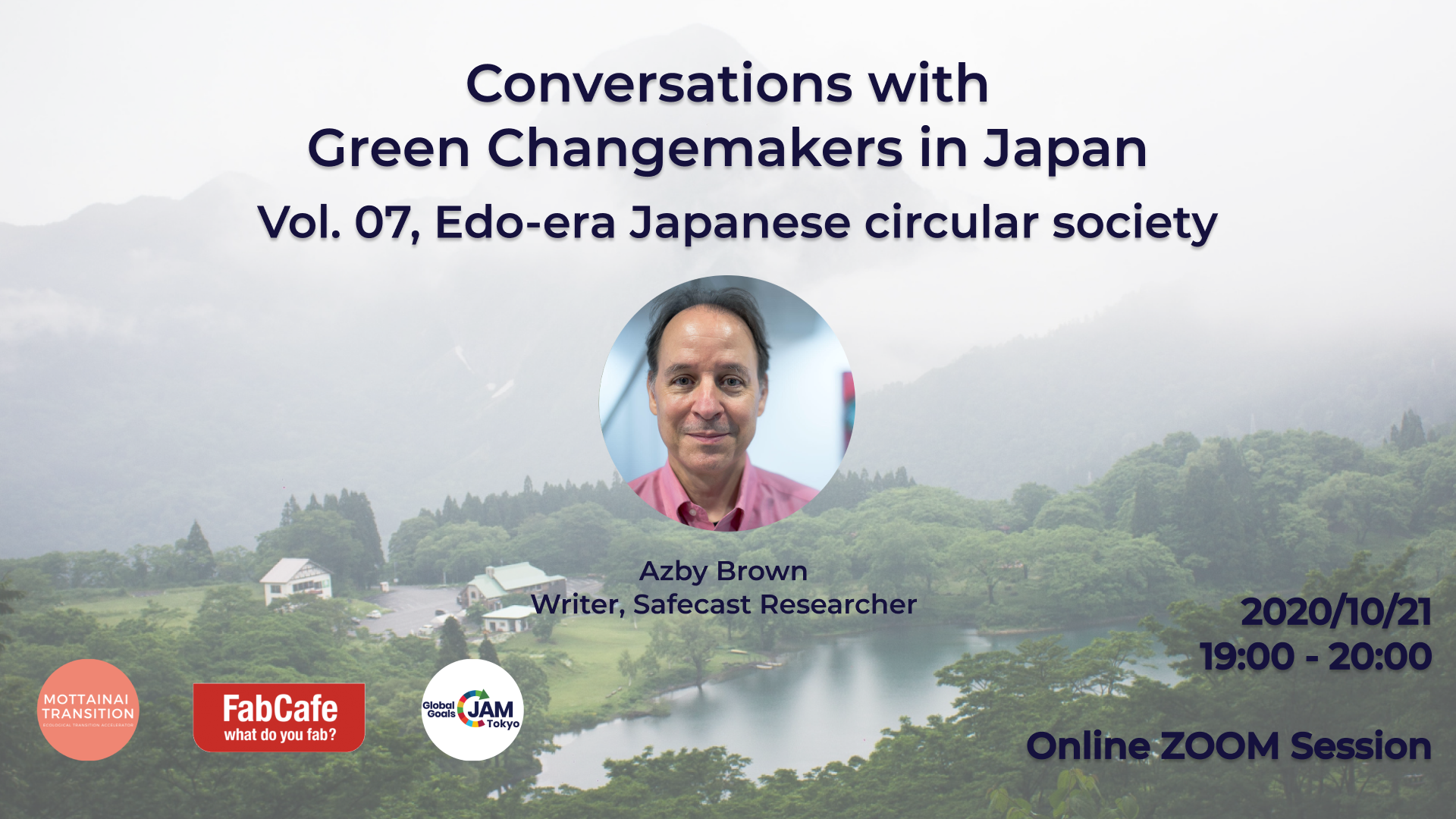 What was the meaning of “circular society” in the historical Edo-era in Japan? Are there any practices that we could reapply in our current society to promote a circular society today? We welcome guest speaker Azby Brown, writer, Safecast researcher, and leading authority on Japanese architecture, design, and environmentalism, to tell us about her experience and expertise on the topic at Vol. 07 of the “Conversations with Green Changemakers in Japan” series.