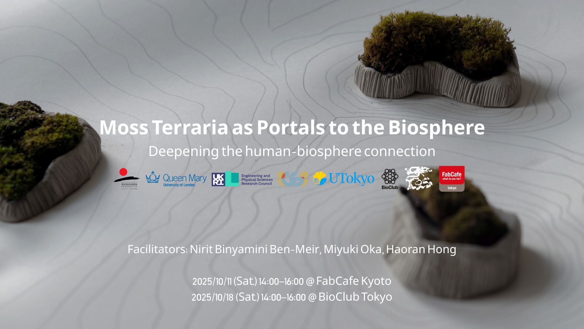 Join us and explore ways to deepen our connection with and awareness of non-human species through moss. We will experiment with technical tools, as well as imagine how networks of terraria could provoke people to live in closer harmony to the biosphere. Through this process, we'll offer fresh perspectives on the relationship between nature, technology, and humanity.