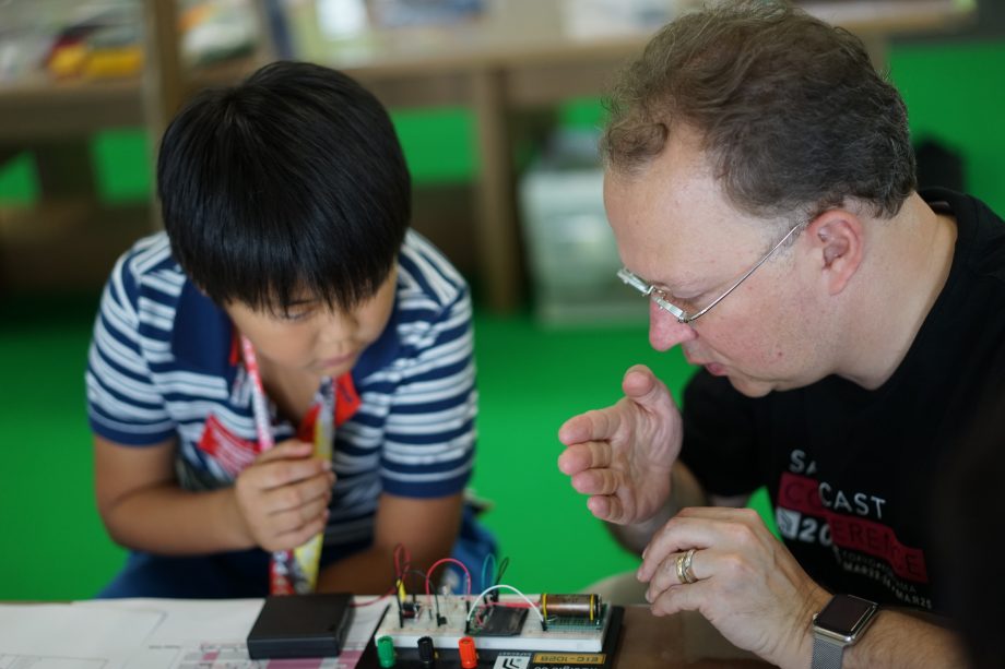 In July 2016, at the “Mirai Summer Camp Kids Workshop”, The kids listened intently to Pieter’s pointers on building.