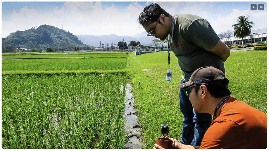Chris "Akiba" Wang and Oliver overlook the rice fields in Japan where they will deploy sensor technology.