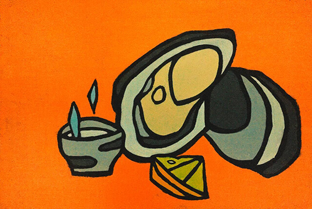 12月FabCafe hidaでは、広島の尾道在住の尾道観光大使、全国をヒッチハイクで行脚した高原直也(下方に自己紹介あり)が、油絵を描いたりお仕事しながら滞在しています。(牡蠣のイラストは高原自作)