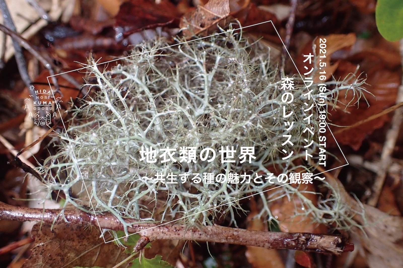 今回の森のレッスンでは、飛騨在住の地衣類研究家・三井崇史さんをゲストにお迎えし、地衣類の誕生ストーリーをはじめとした基礎知識から、その魅力や見つけ方などを教えていただきます。身近な自然や街への眼差しが変わること、間違いなしのオンライン企画です。みなさま、ぜひご参加ください。