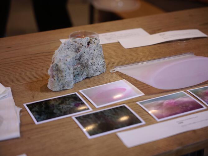 生きた色のあるバクテリアを繊維の上で培養することで染色するバクテリア染色。日本ではまだ取り組みの少ないこの染色方法を1.5カ月にわたって多様なメンバーと実施しました。その研究結果や実際に染色した作品を展示します。