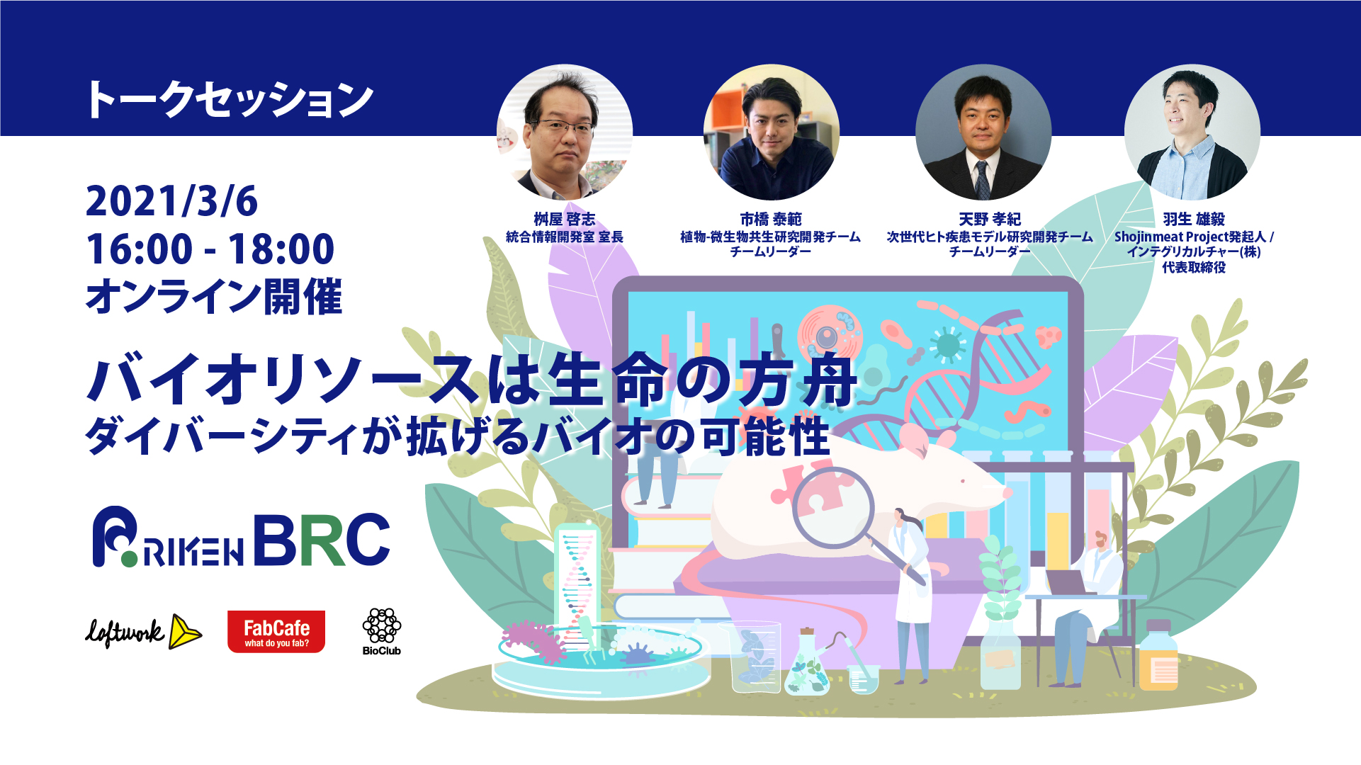 2021年、世界的なバイオサイエンスの基盤の1つである理化学研究所バイオリソース研究センター(理研BRC)は設立20周年を迎えます。バイオリソースとは、生命科学の研究開発やバイオ産業で用いられる「材料」を指す言葉で、生物遺伝資源とも呼ばれます。理研BRCは、細胞やマウス、植物、遺伝子、微生物といったバイオリソースを管理・整備し、さらには研究開発・技術開発までを担う、まさにバイオの方舟のような機関です。「誰がやっても同じ結果」を生み出すような、質の高い研究を行うためには、質の高いリソースと、質の高い研究方法が必要です。理研BRCは、多様性そのものである生物を「資源」として、正しい実験や研究ができるような品質管理や、技術の開発と提供を行い、さらには研究者が権利やルールを守って研究ができるような環境づくりにも貢献しています。今回のイベントでは、バイオに興味のある皆様へ向け、確かな知識や技術をもたらす質の高い研究とは何か、そのために何が必要なのか、その根本を解説します。