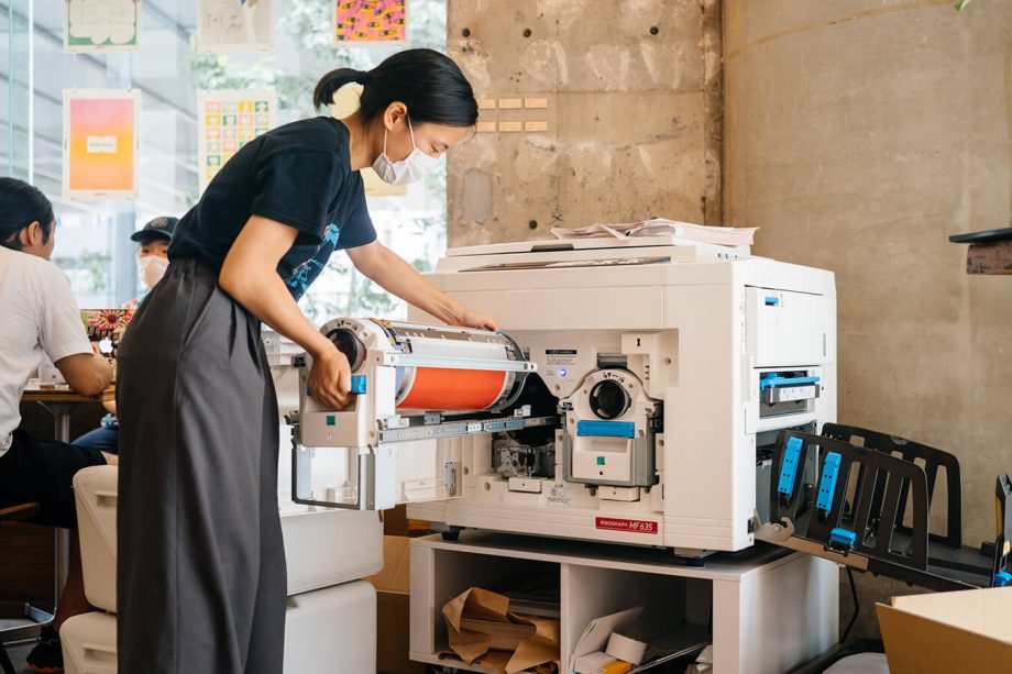 *リソグラフ: “リソグラフは、ガリ版などの孔版印刷の原理に理想科学独自の技術を融合させた高速デジタル印刷機。印刷の元となる版(マスター)をつくり、内部の印刷ドラムに巻きつけ、紙を通して印刷を行うしくみです。コピー機感覚で操作することができ、1度の通紙で1色/2色*1の印刷が可能です。1つの原稿をスピーディー・低コストで多枚数印刷する用途に適しており、チラシや教材の印刷で広く使われています。” (引用元:https://www.riso.co.jp/product/risograph/feature/index.html )