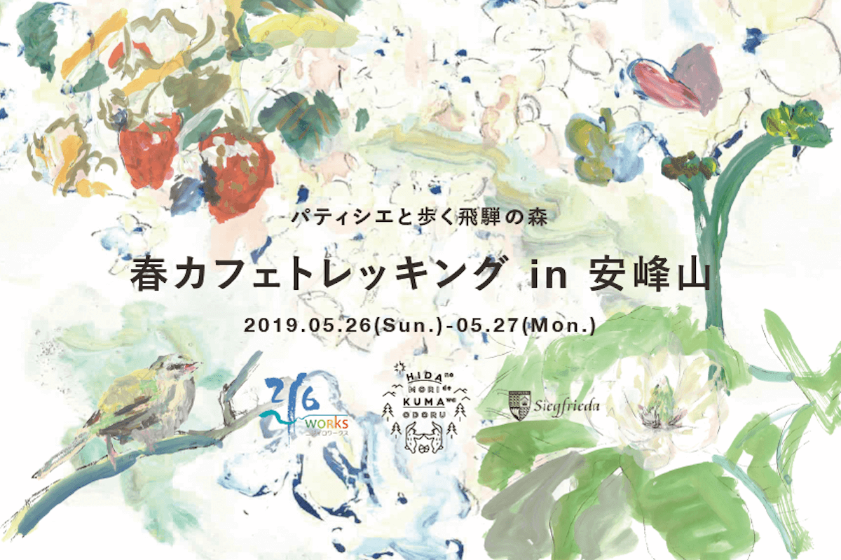 森を歩くにはぴったりの春がやってきました。今春、『パティシエと歩く飛騨の森 「春カフェトレッキング in 安峰山」』を開催します。このプログラムの一番のお楽しみは、下呂で人気のケーキ屋さん「ジークフリーダ」のパティシエでありアウトドア好きの北條シェフと森のガイドとともに歩くカフェトレッキング。飛騨古川の「安峰山(あんぽうざん)」に訪れた春を感じながらゆったり歩きます。山頂では町を一望できる眺望と、この日のためのスペシャルスイーツがあなたを待っています。