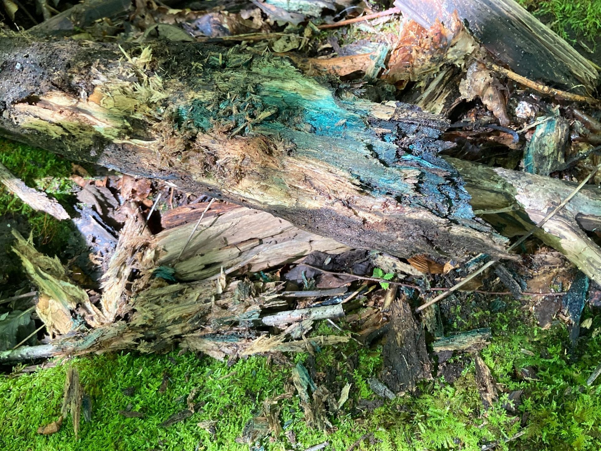 10月の山観日では森へ分け入り「青」を探します。私たちが探している「青」は、広葉樹の倒木などに群生するキノコの一種のロクショウグサレキン。当日は、ロクショウグサレキンを使った染め物も実験します。飛騨の森で探し物をしてみませんか?