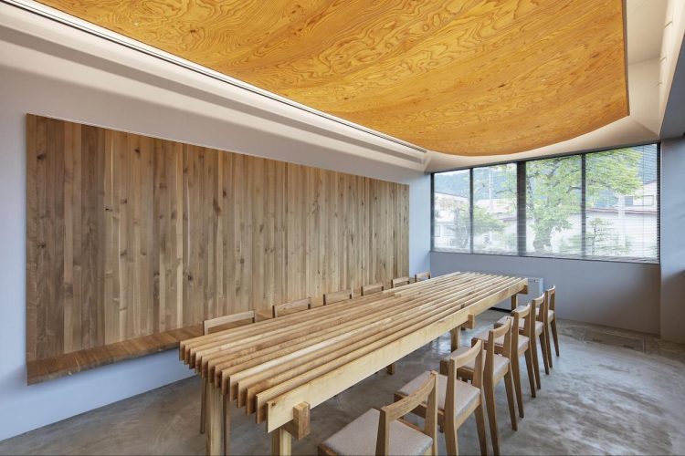 昨年リニューアルした「飛騨市役所応接室」は、多様な広葉樹を使った木質空間。