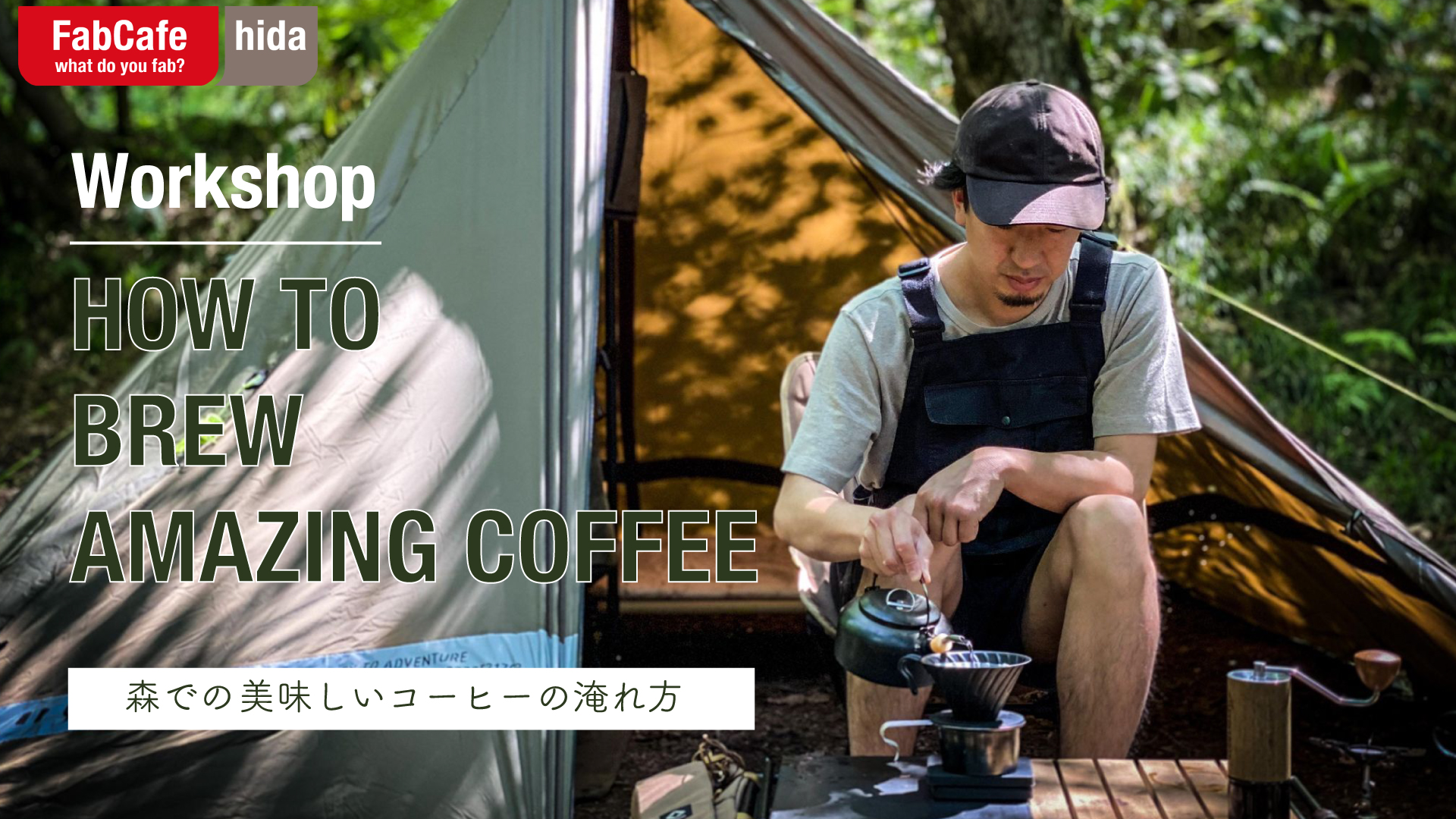 この日、FabCafe Hidaは森でオープン!飛騨高山でバリスタとして活躍されているGARAGE COFFEE WORKSのタケさんから森の中でのコーヒーの楽しみ方を学ぶワークショップを開催します。