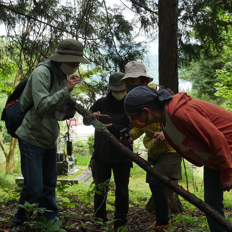 地域にお住まいの岡田さんの私有林です。針葉樹の丘や広葉樹のコナラが並ぶ小道など森の多様性を見ることができます。FabCafe Hidaでもお世話になっている岡田さんは、岐阜県の森林公社で、林道の測量設計や森林設備、森林管理、観光利用や環境教育などの森林多面的事業に従事された後、定年を機会に、代々受け継いできた森に道をつくり、市民の場として解放しています。