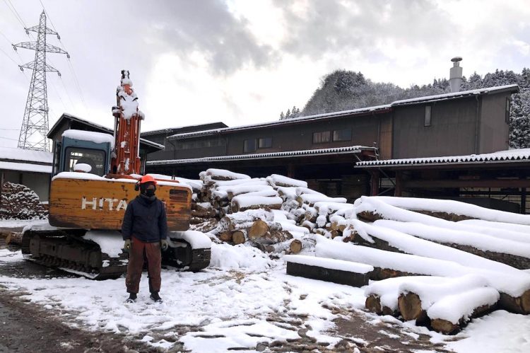 飛騨の森から下りてきた広葉樹が集積する集材所訪問