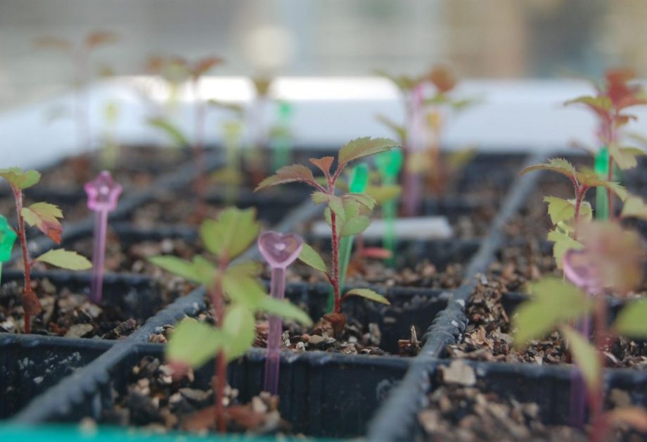 動物の糞内細菌は植物にどう影響するのか。実験中のズミの実生。