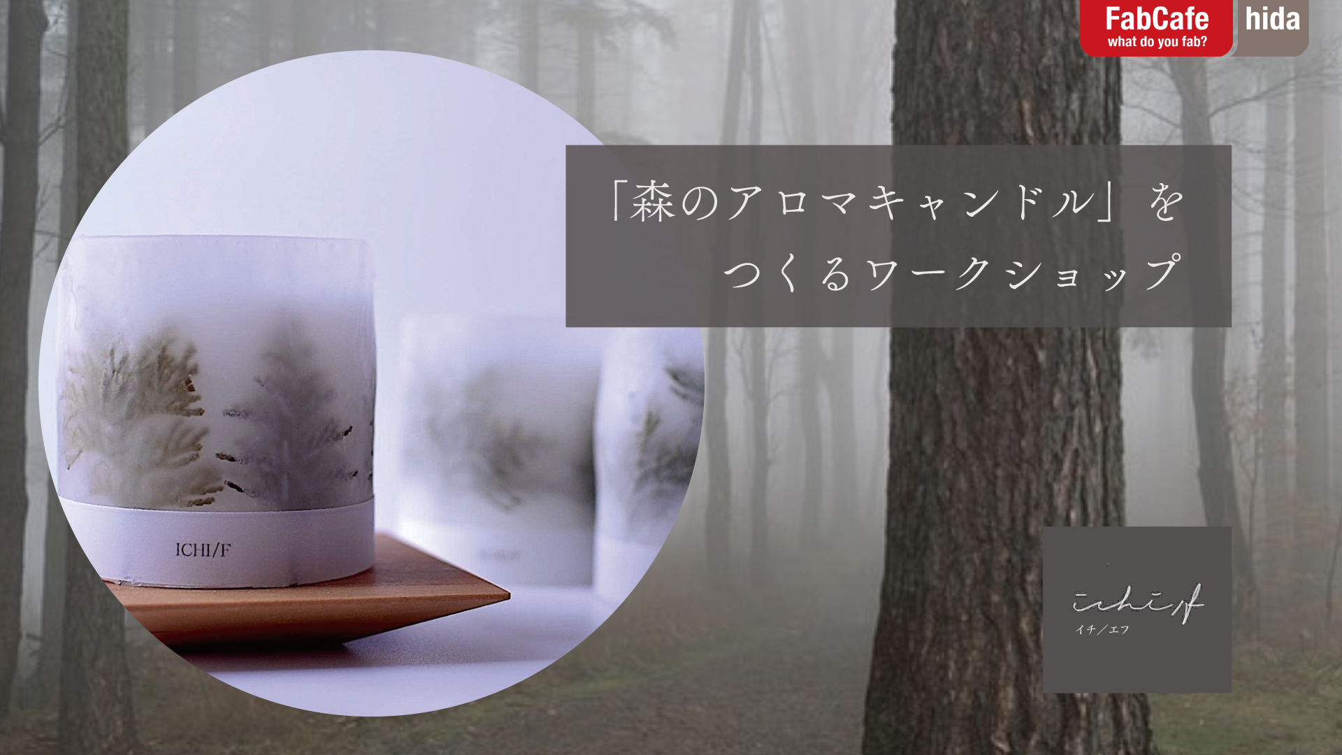 森のアロマキャンドルをつくるワークショップを開催します。講師に、中津川市加子母で自然由来のキャンドルをつくっているイチ/エフ(エフブンノイチ)の嶋倉玖実さんをお迎えします。つくるのは、ヒノキ葉精油をたっぷり使用した、森林浴を楽しむようなアロマキャンドル。。大切な人へ気持ちをこめて贈り物として、あるいはご自身のものづくりを楽しむ時間にも最適なキャンドルです。大切な人と一緒に過ごすとっておきの時間、ひとりで過ごすリラックスタイムに、キャンドルに火を灯しのんびり見つめて癒しの時間を過ごしてみませんか?当日は、FabCafe Hidaの蔵出し広葉樹でキャンドルを置く台(燭台)を探したり、イチ/エフ(エフブンノイチ)さんの他のキャンドルも購入できるミニマルシェも開催します。お楽しみに!