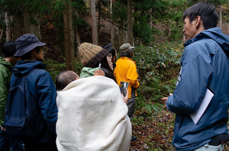 ナビゲーターは、飛騨市教育委員会の学芸員である三好清超さん、飛騨で縄文時代から続く森との関わりを実践している百姓・藤原タクマさん、ヒダクマの松本です。