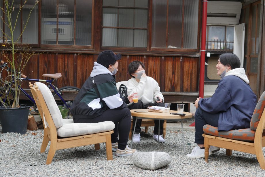 旧熊崎邸を改築したFabCafe Hidaの中庭。当時からある2本の赤松も眺めてください。