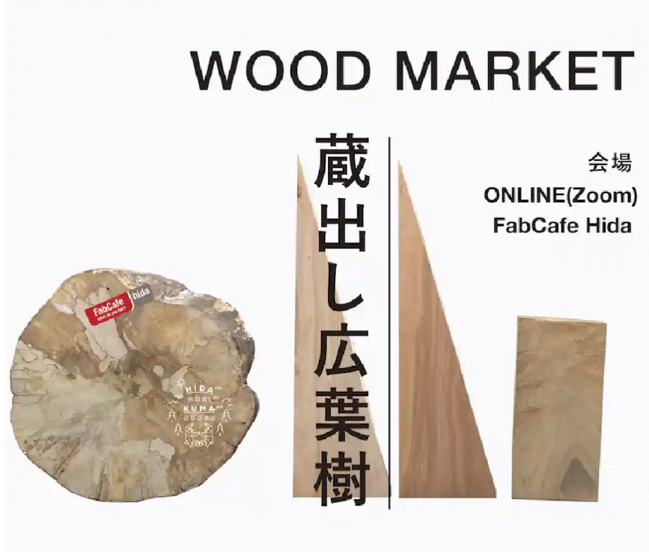 飛騨市産の広葉樹が購入できるWOOD MARKET「蔵出し広葉樹」。FabCafe Hidaの奥にある蔵前に、様々なサイズの板材や耳付きの木材、小枝から丸太まで、ホームセンターでは手に入らない木をご用意。1g1円の量り売りでご購入いただけます。眺木展を楽しんだあとは、My眺木を見つけるのもおすすめ。ほかにもDIYや木工作品の製作に、飛騨の広葉樹を使ってみませんか?店内ではFabCafe HidaのCafeやFabサービスもお楽しみいただけますので、お気軽にお立ち寄りくださいね。