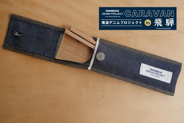 備後地方で作られたデニム生地を使用した尾道デニム特製カトラリーケースに、FabCafe Hidaのオリジナルキットで作るMy箸やお好み焼き用Myヘラをセットして、尾道や飛騨のまちに出かけ、美味しい食を堪能しませんか?