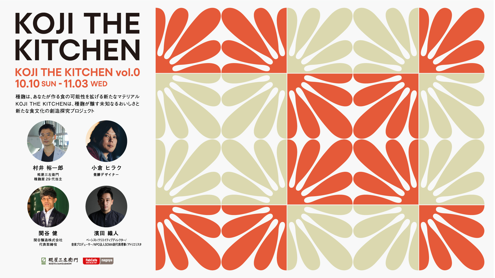 今回のKOJI THE KKITCHEN vol.0 では、FabCafe Nagoyaを拠点に、東海地方のフードクリエイターが持つクリエイティビティと、種麹の営みで生まれる未知なるおいしさを信じ、それらを掛け合わせることで生まれる食や食体験の新しい側面を探究する過程を共有していきます。