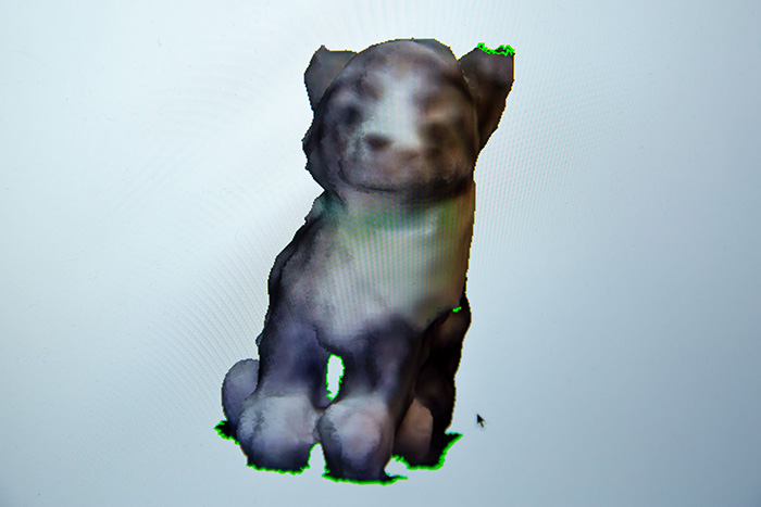 本プロジェクトでは“@Same_Not_Same”と題した三年ぶりの新作シリーズを発表するにあたり、新しい試みとして3Dプリンターを使用した立体作品の完成を目指した。作家本人が所有している大量生産品の猫のぬいぐるみをスキャンして生成した3Dデータを実寸よりも小さく出力し、それらをグルーガンで繋げ合わせて一つの作品としている。