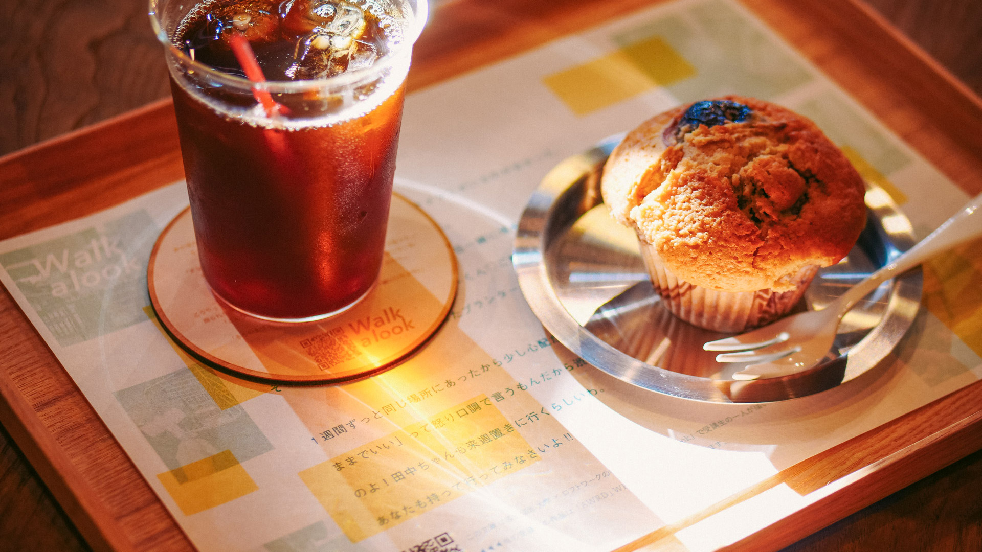 FabCafe Kyotoでは、2021年9月から「FabCafe Kyotoのおやつ」を始めました。画像のメニューは、ダークチェリー&バニラマフィンとFabCafe Kyotoオリジナルブレンドのコーヒーです。店頭では、マフィンやクッキー・プリンなどの焼き菓子を、おやつディレクターが気まぐれでご用意しています。