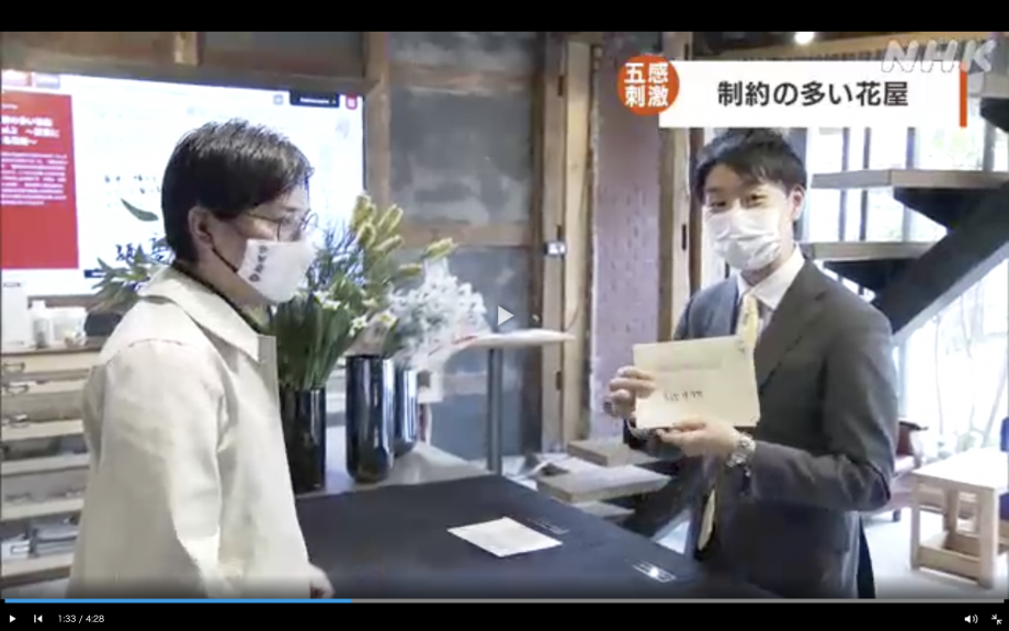 「証言を売る花屋」は12月17日のNHK「ニュース630京いちにち」および「ニュース845」にて、紹介されました。番組の中では、竜田アナウンサーが実際に体験しながらリポートされました。