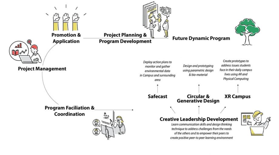 そうした背景のもと、生徒たちはXRやバイオ、Safecastなどのを用いたプログラムでの制作活動を実施。加えて、大学キャンパスを拠点にオンラインで日本と台湾を繋ぎ、国際的な連携によるハイブリッドなプログラムとして取り組むことで、学生たちが今後も専門領域や国境の垣根を超えたコラボレーションを実践していくことへの道筋を示しました。