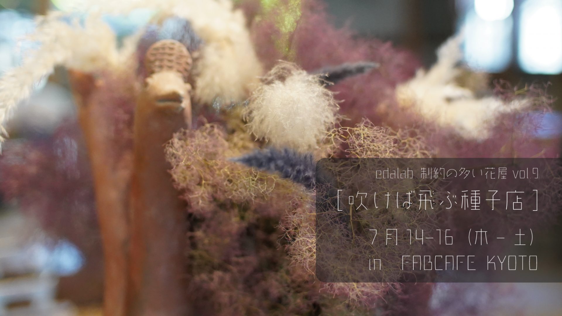 今回のテーマは「吹けば飛ぶ種子店」です。今月FabCafe Kyotoに並ぶのは、綿毛の植物です。