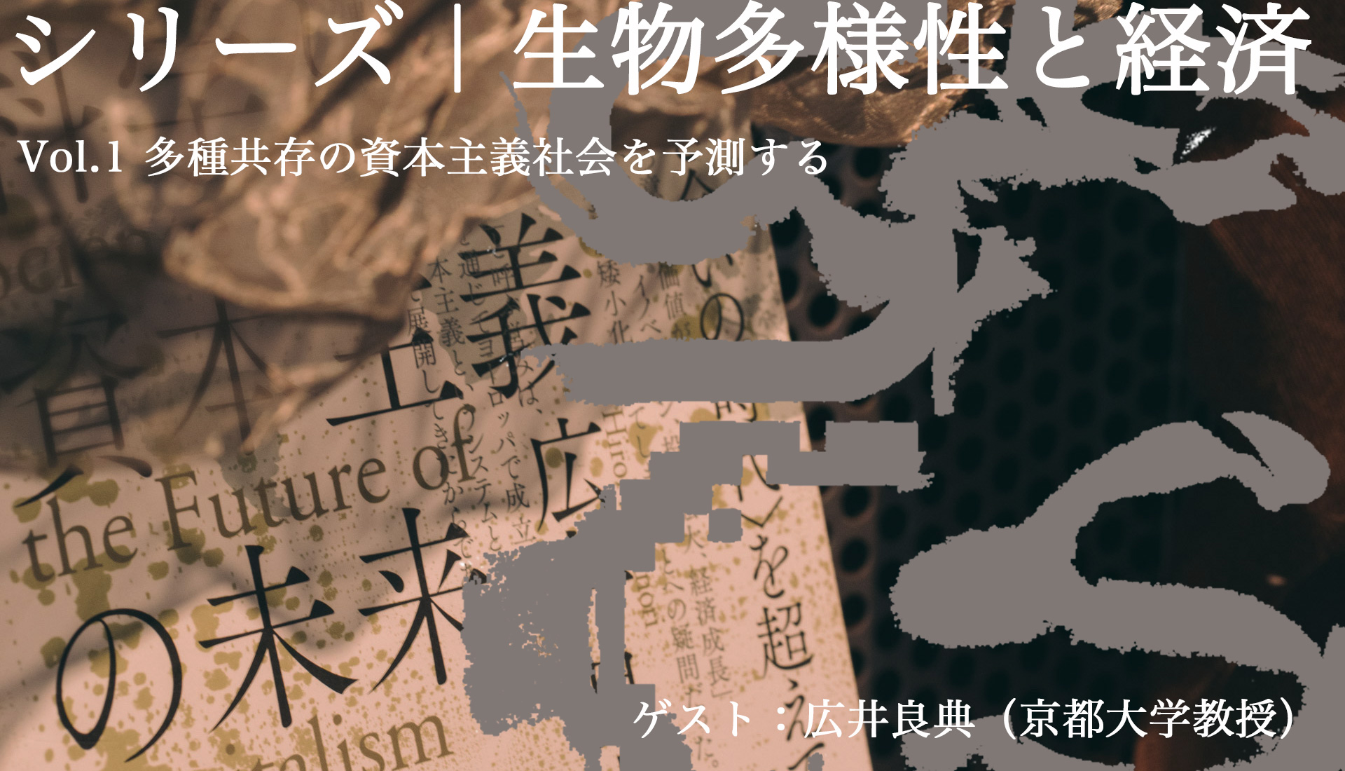 社会背景を踏まえて、多種共生のデザインがどのように経済活動と結びついていくのか、また、どのように評価しうるのか、今後の可能性を探るトークシリーズ。初回のゲストは京都大学教授であり、次期生物多様性国家戦略委員も務める広井良典さんです。公共政策と科学哲学の視点から、生物多様性と持続可能な経済活動の接点や可能性についてディスカッションします。