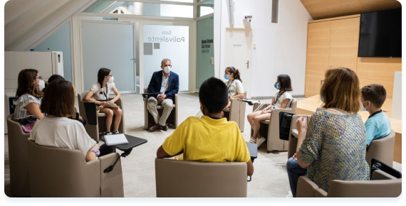 バルセロナのブラウ美術館の児童委員会が、いくつかの緊急課題について審議している様子