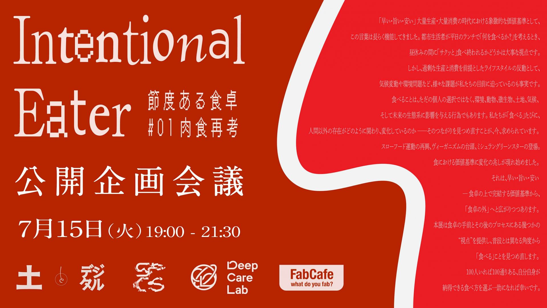本イベントは、FabCafe Kyotoで7/15(火) – 7/25(金)に開催される企画展示「節度ある食卓 #01 肉食再考」の関連イベントです。