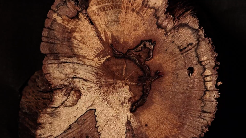 Brett Foxwell and Conor GrebelWoodSwimmer(木を泳ぐ人)は、ウッド・スキャニングというコンセプトのショートビデオです。コマ撮りアニメーションで、硬木の表面を研磨した断面をカメラで撮影しました。断面を追いながら木材のサンプル全てを映しています。ビデオでは、年輪や放射組織、反応帯、節、腐敗や腐食など硬木の内部を鮮明で動きのある映像として見ることができます。
