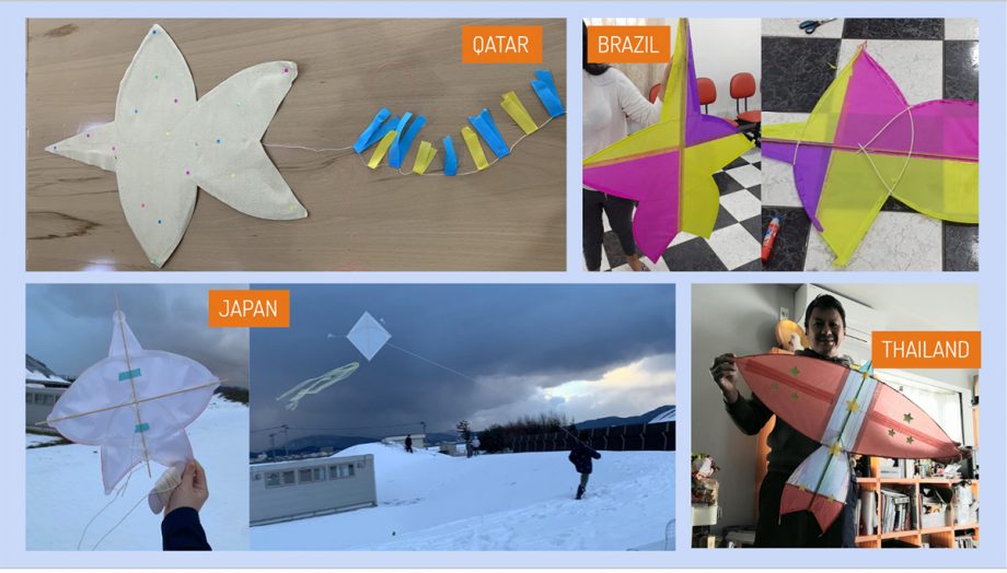 Global kidsは、様々な国の有志が相談し、互いの国の子供達にものづくりイベントを提供する活動をしています。みんなで一緒に作るものは、どこかの国で子供の日を祝うめの伝統的なデザインです。