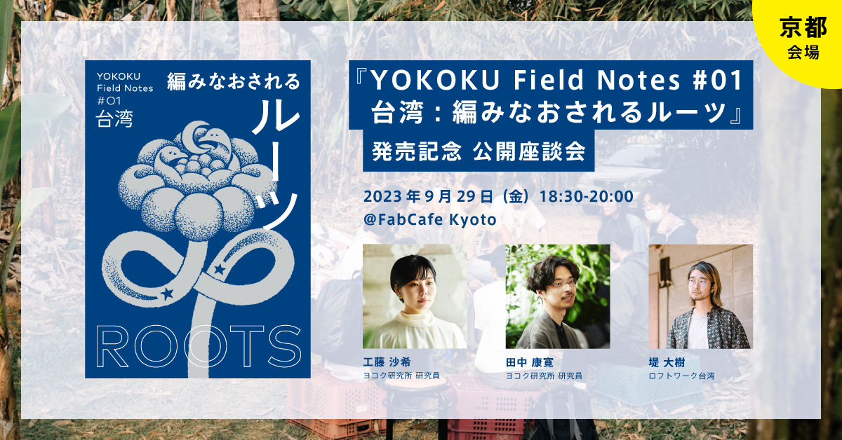 ヨコク研究所による「自律協働社会」の兆しを個別の地域から探索するリサーチ活動とそのレポート〈YOKOKU Field Notes〉第1号の出版記念イベント。台湾でのリサーチのプロセスを紹介すると共に、本書のテーマ「編みなおされるルーツ」について参加者のみなさんとともに考える座談会を実施します。(共催:ヨコク研究所/株式会社ロフトワーク)