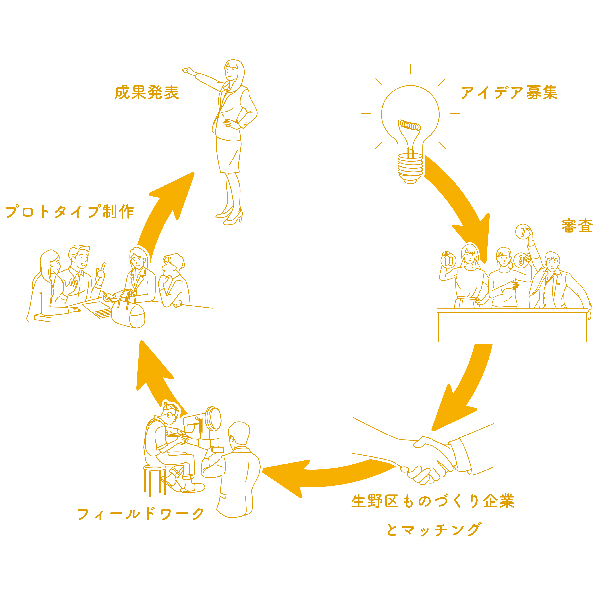 今回、「ものづくりを面白がる」をテーマに、これまでのものづくりの分野を越え、新たなものづくりに挑戦する4社とイチからBtoC製品を生み出し、新たな市場の獲得をめざすプロジェクト。