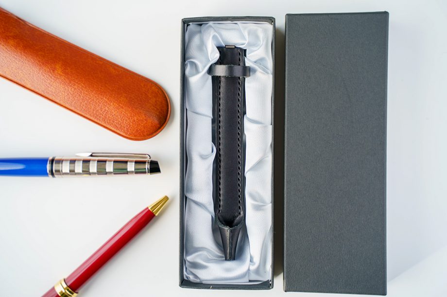 仕事上ペンを使用する機会があるなか、徐々に俗に言う高級ペンに惹かれ、収集兼業務での使用を重ねるうちに今般開発のペンホルダーの形体を発案。京都市左京区の革製品製造会社と提携し完成品を製作。国内での意匠権を取得し、販路開拓中。