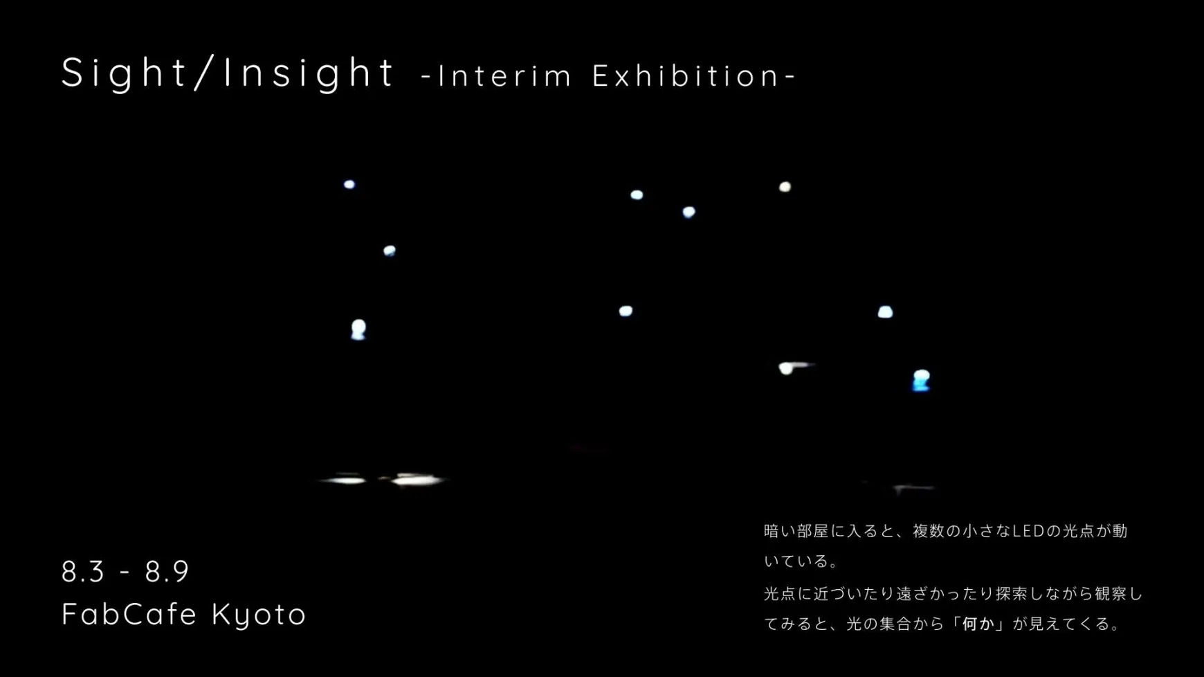 京都の夜の場景の中から、人間の運動知覚と探索的行為から光の新しい見方を抽出し、光を見る意識を変容することを目的としたプロジェクト「Sight / Insight 」を通じて試みた、新たな光の見方を提示する表現の種を展示します。
