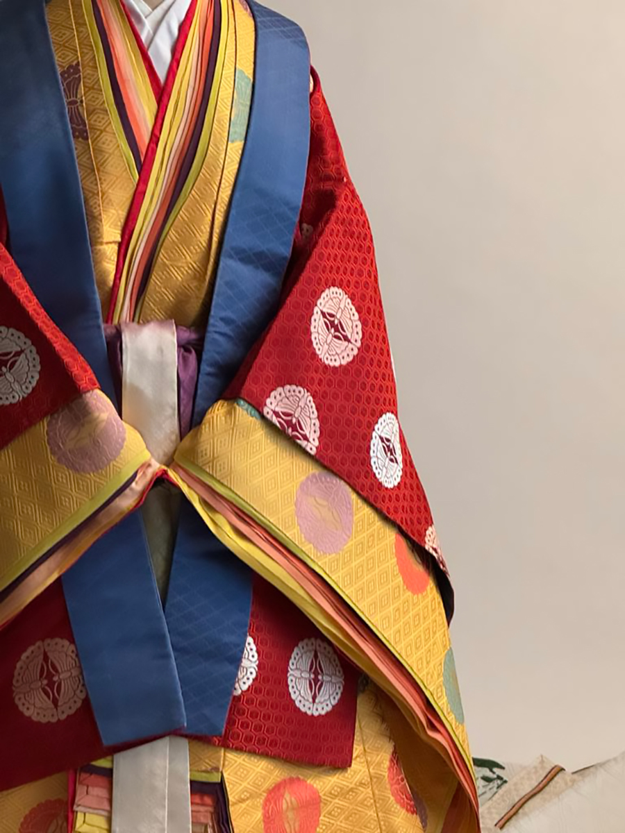 装束業をいと黒田家に嫁いできてから修行し、お守りのデザイン、十二単や平安装束の仕立てから衣紋、プロデュースを手がける。