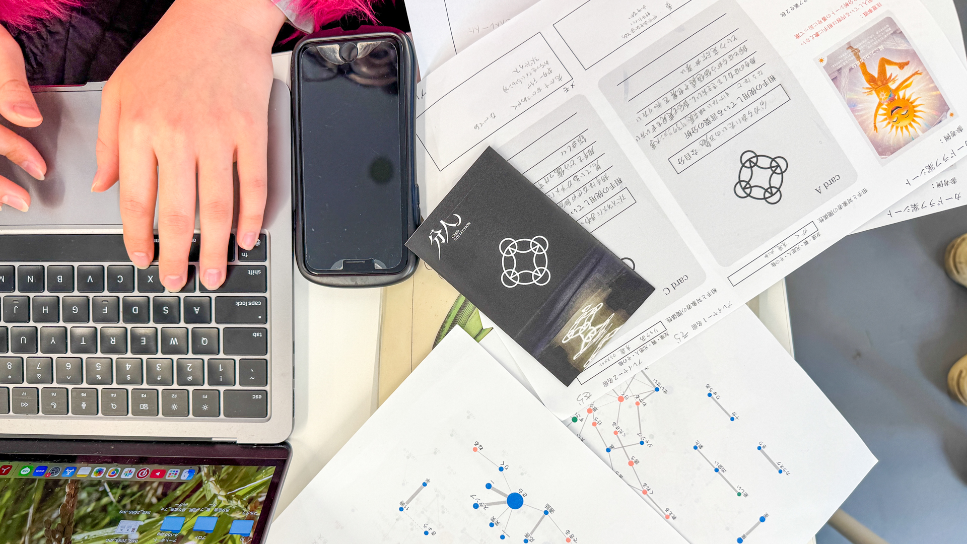 そこで本年度は、「存在・偏在・遍在」をテーマに、身近な出来事を観察しながら、これからのつながりの形を探ることを目的としました。また、この考察の補助線として、平野啓一郎氏が提唱する「分人主義」を取り入れ、カルチュラルプローブス(文化的探索キット)を活用した調査を行いました。