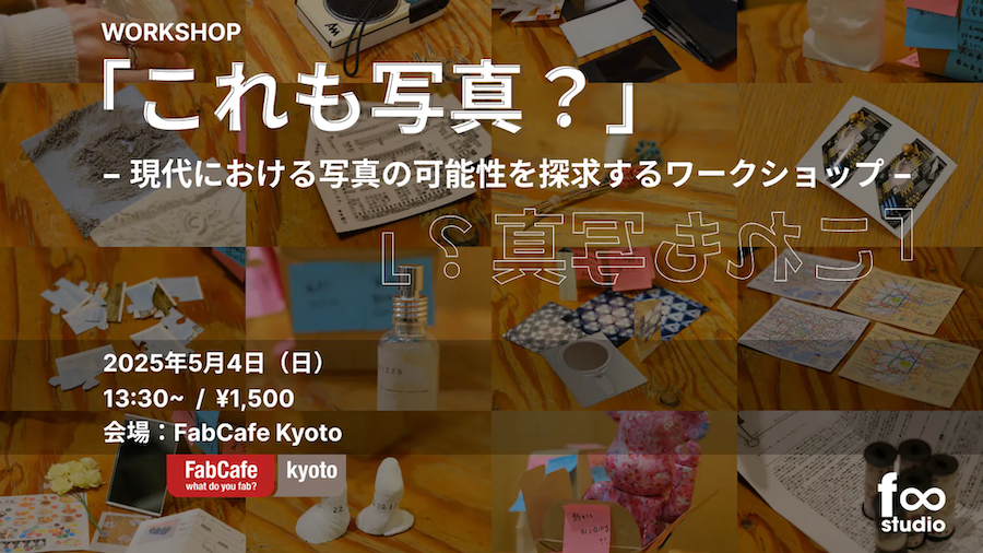 f∞ studio(フー・スタジオ)は「写真」の周縁の探索から「未来のみたい」を探求するコミュニティです。京都では2度目の開催となる「現代の写真の可能性を探索するワークショップ」を、KG+ Public ProgramとしてFabCafe Kyotoで開催します。普段写真を撮ってる人も、そうで無い人でも大歓迎。共に新しい写真の可能性を京都を舞台に開いてみませんか?(主催:f∞ studio、協力:FabCafe Kyoto)