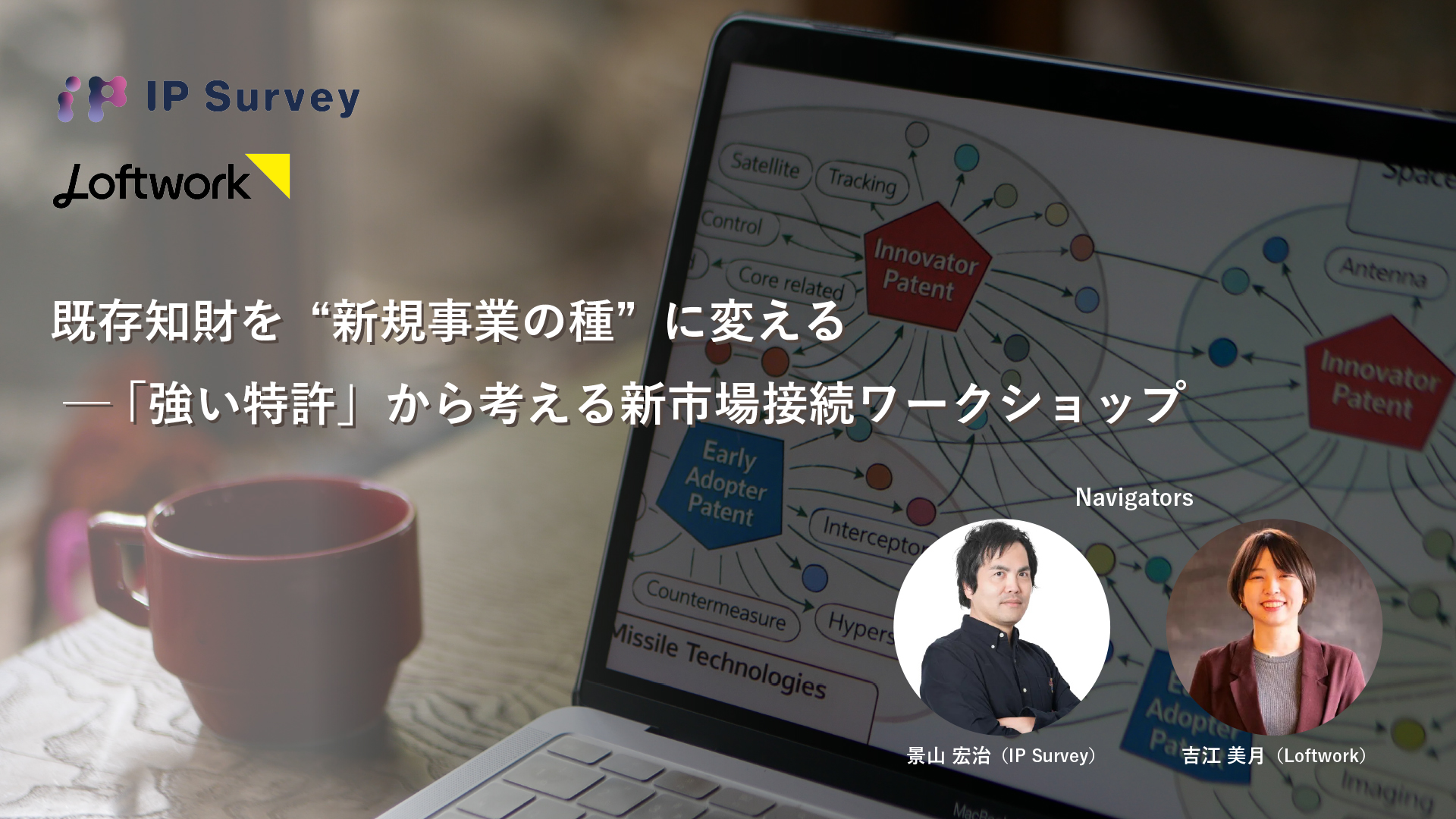 多くの企業が、自社の知財を「守る資産」として保有しています。一方で、それらを十分に活用した新規事業の創出には困難がつきまといます。本ワークショップでは、「強い知財とは何か?」を起点に、それらをどの市場で事業として成立させることができるのかという視点から再解釈します。他社特許を題材にすることで、個別企業の事情にとらわれず、市場と価値の関係を再設計する思考プロセスを体験いただきます。(共催:IP Suevey、ロフトワーク)