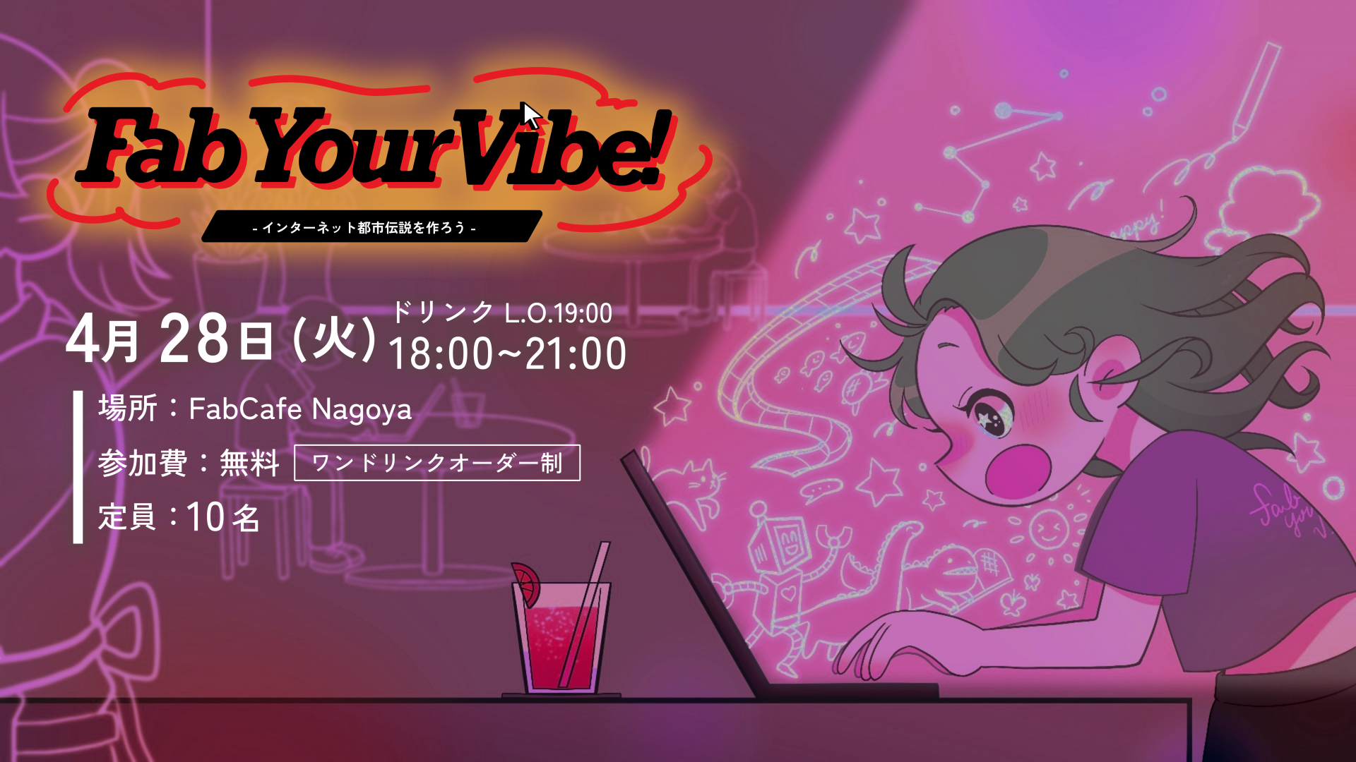 今回のFab Your Vibe!では、「インターネット都市伝説」をテーマに、恐怖のWebアプリを制作します。当日は、都市伝説のサブジャンルや恐怖のメカニズムを簡単に紹介した後、各自もくもくと制作に入り、最後に作品をシェアします。平成ネットロアの記憶を蘇らせるもよし、まったく新しい都市伝説を生み出すもよし。怖い話が好きな人も、バイブコーディングで何か作ってみたい人も、どなたでも歓迎です。