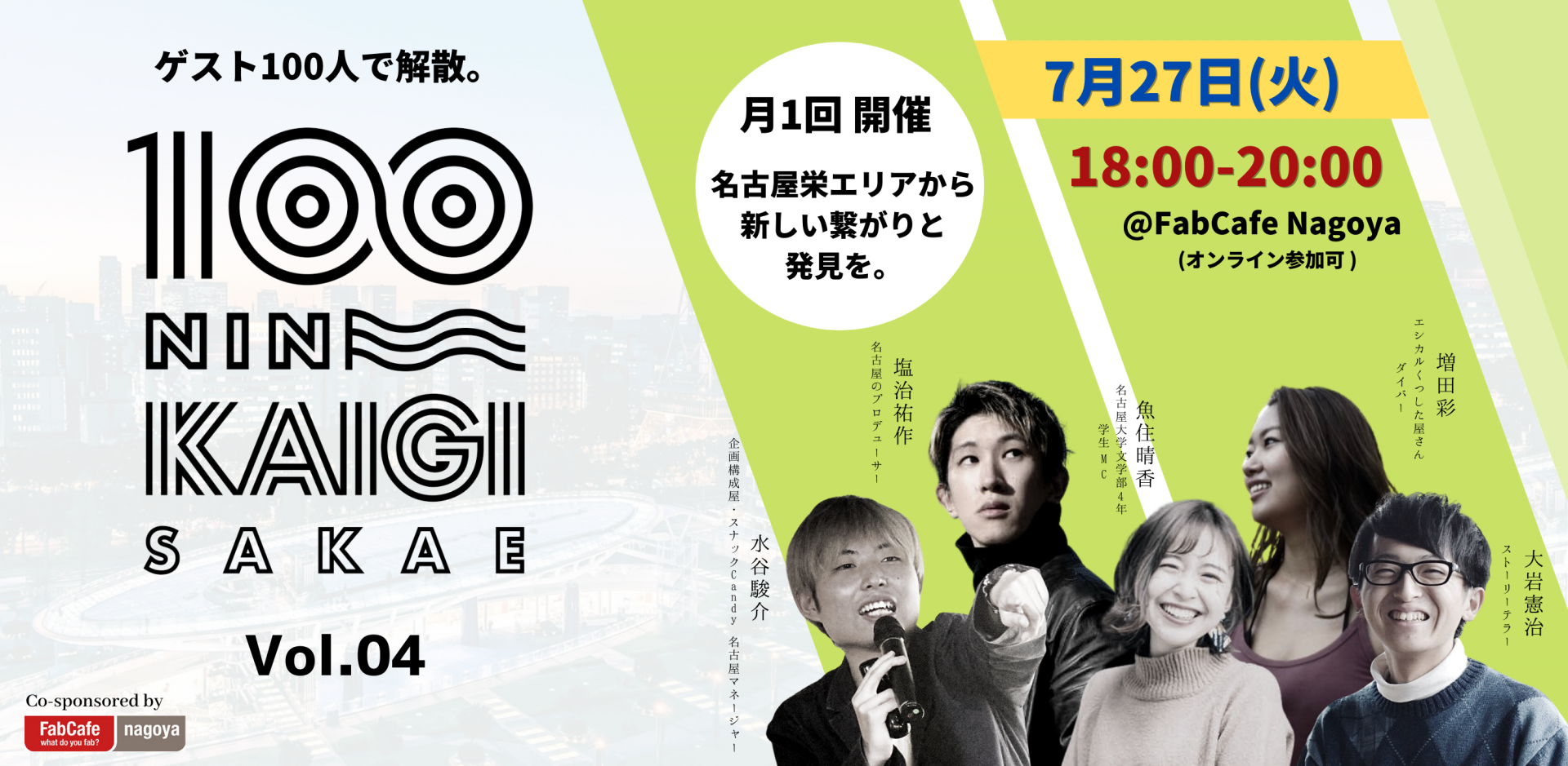 2019年6月名古屋に初上陸した『ナゴヤ100人カイギ』に続き、東海では2ヶ所目となる『サカエ100人カイギ』、7ヶ月ぶりに開催します。