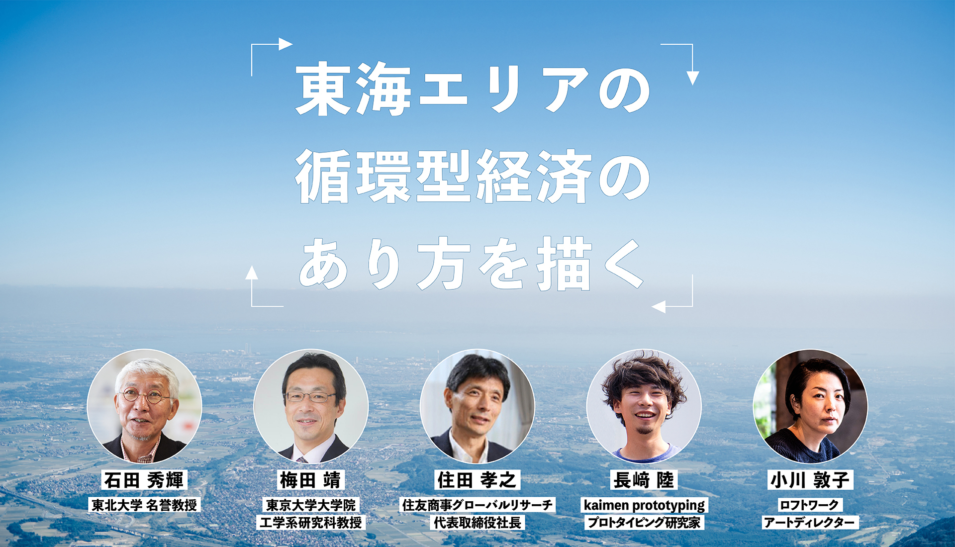 東海だからこそ実現できる循環型経済を描き実装することを目指し東海サーキュラープロジェクトを発足しました。本イベントでは、これまでのプロトタイピングから導いた仮説を発表。東北大学 石田 秀輝氏、東京大学大学院梅田 靖氏、住友商事グローバルリサーチ代表 住田 孝之氏をお招きし、いかにサーキュラーエコノミーをビジネスの現場に定着させていくか議論を深めます。