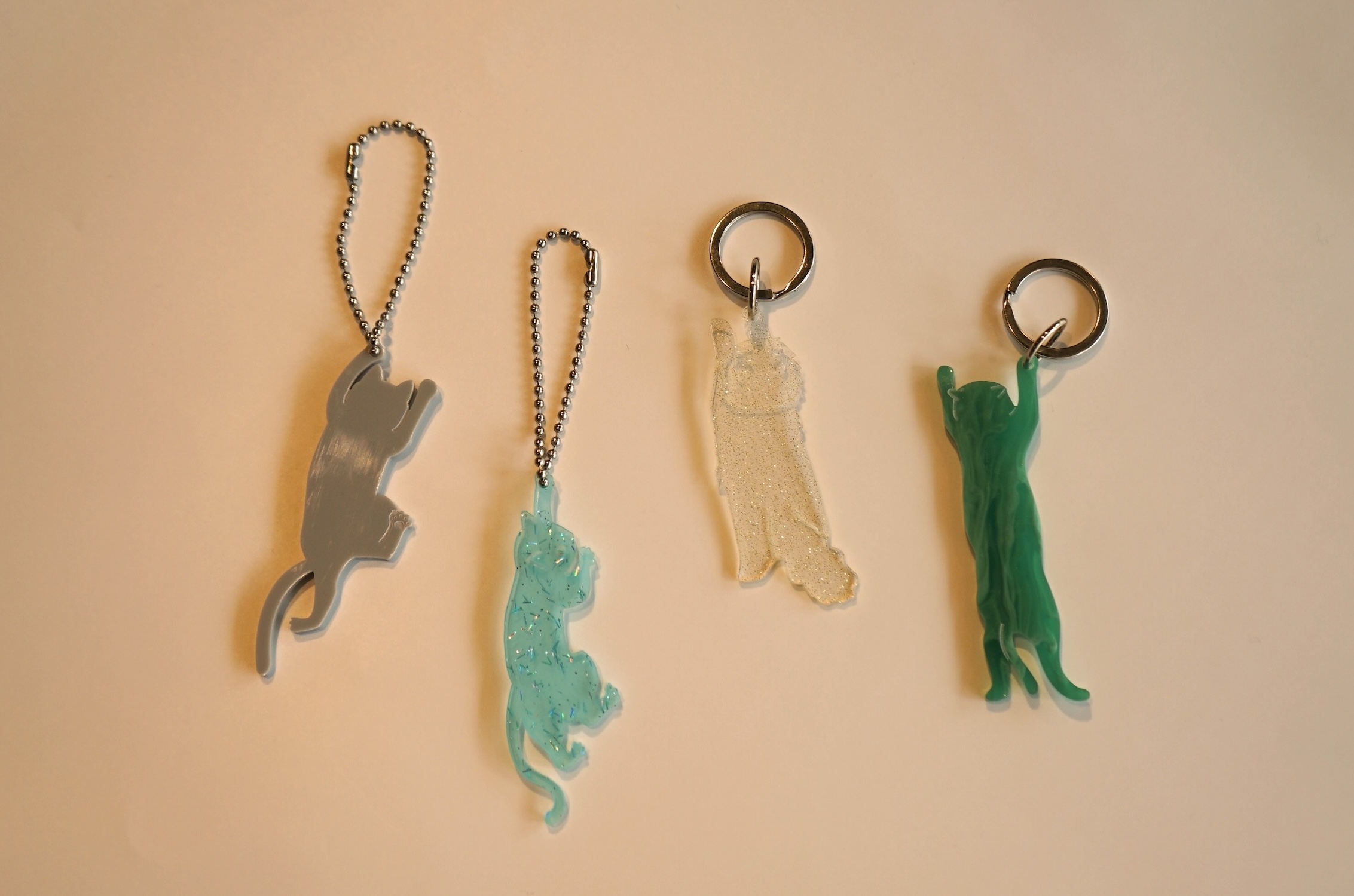 4匹のにゃんこの型と、約100種類のアクリル素材から自分だけのにゃんこを作って、お家に連れて帰ることができます。ひっかかりにゃんこのキーホルダーに、自分のお名前や飼っている猫ちゃんのお名前を入れることもできます。