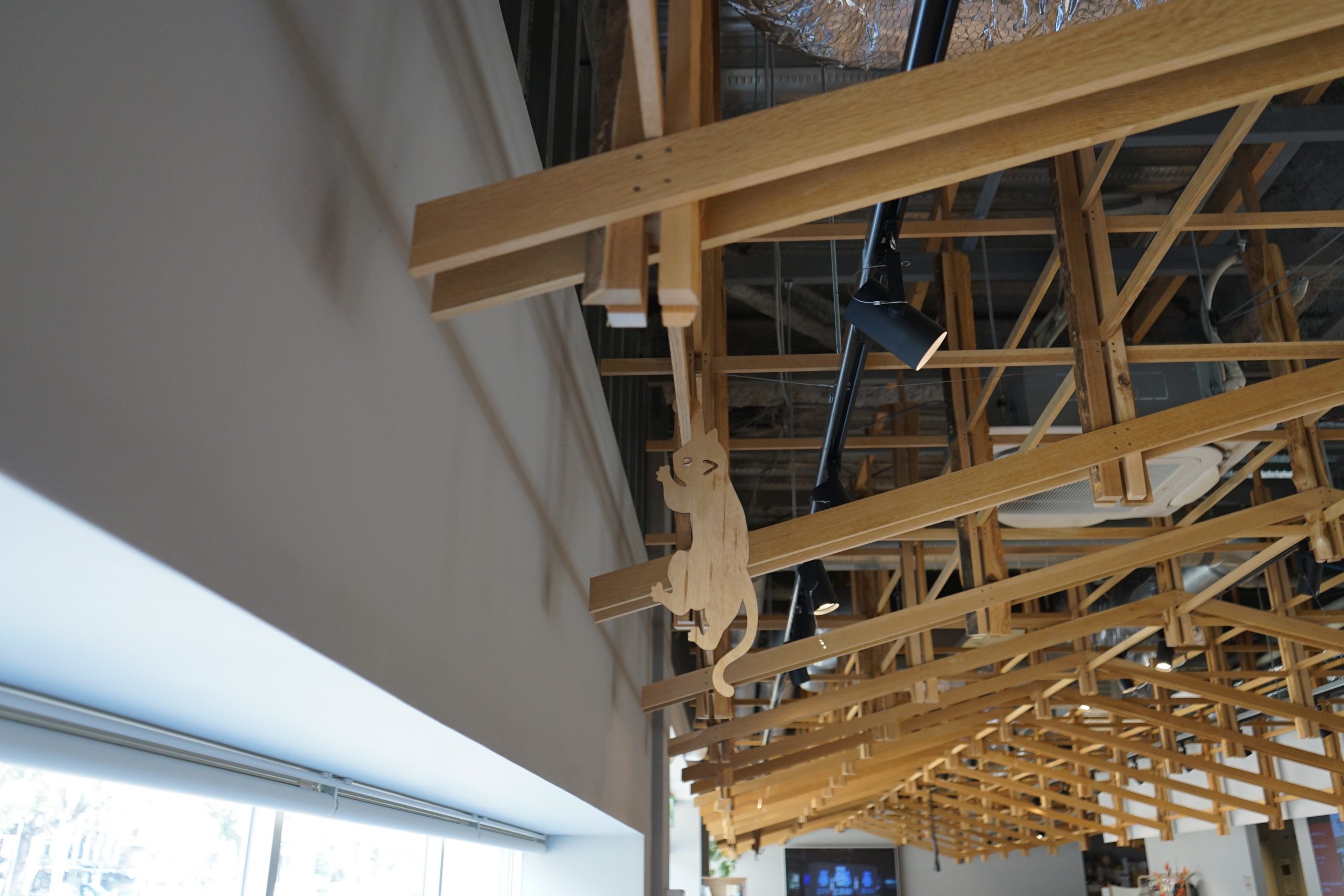 FabCafe Nagoyaでは、店内のいたるとこで「隠れひっかかりにゃんこ」を見つけることができます。