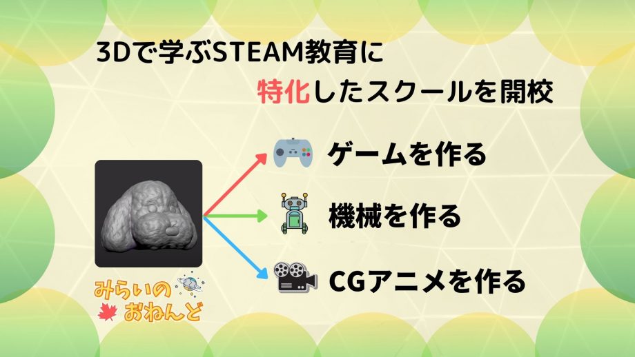 【みらいのおねんど教室】ではCGを使ったSTEAM教育をしております。