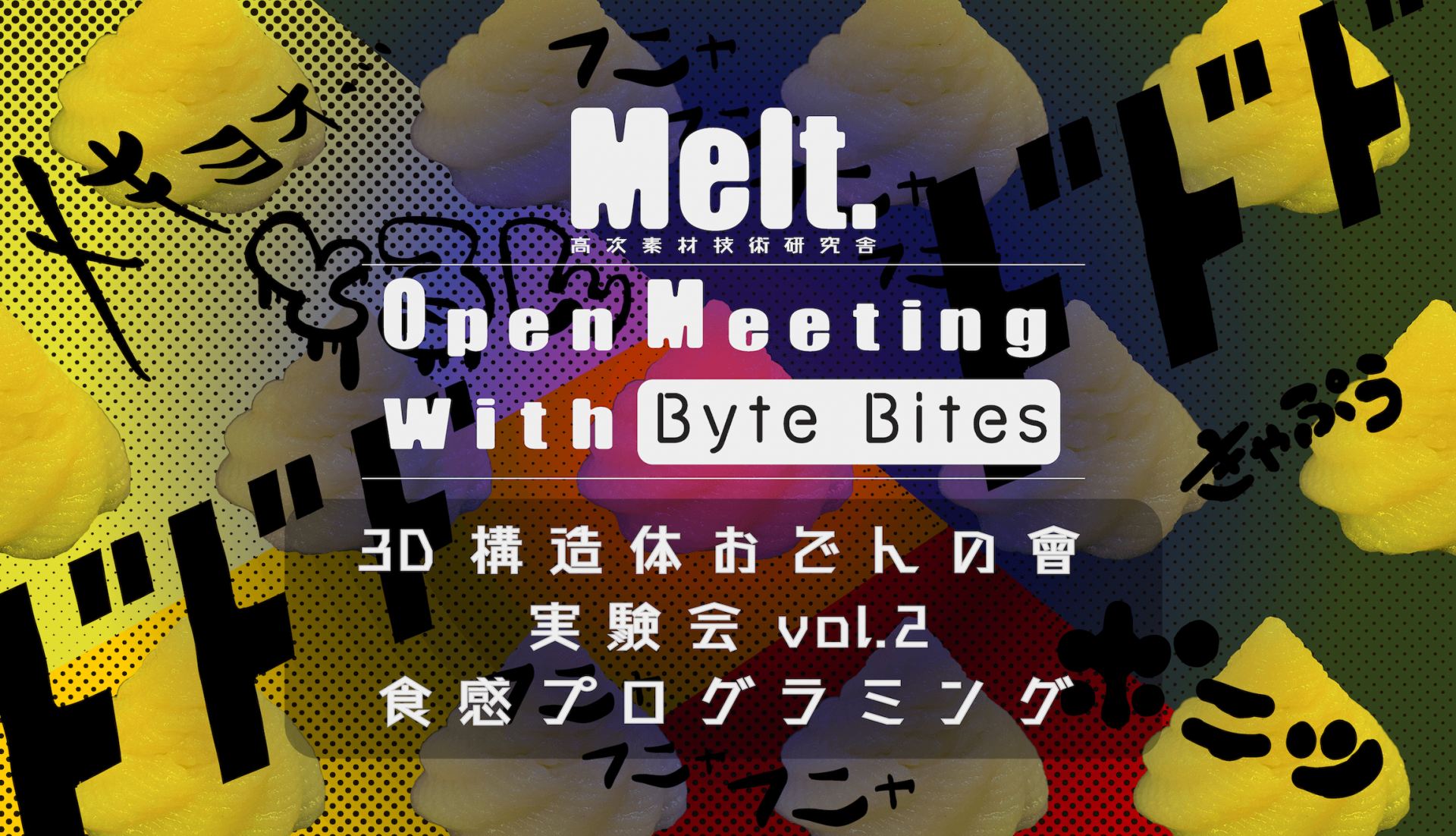 食感をデジタルに制御し、アナログな体験へと変換するByte bites inc.とMelt.とのコラボレーション企画です。食感のイメージ・構造の構築・実食の全3回からなる連続食感デザインリサーチをおこないます。