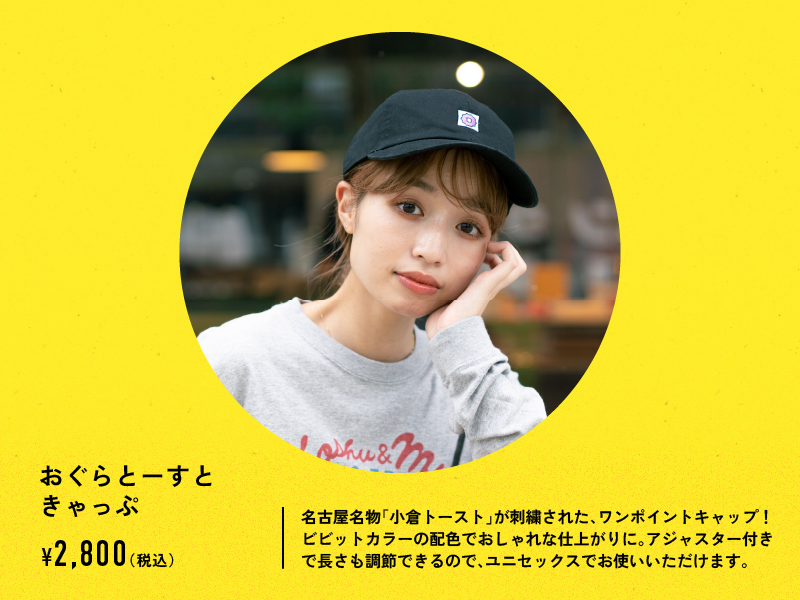 名古屋名物「小倉トースト」が刺繍された、ワンポイントキャップ!ビビットカラーの配色でおしゃれな仕上がりに。アジャスター付きで長さも調節できるので、ユニセックスでお使いいただけます。