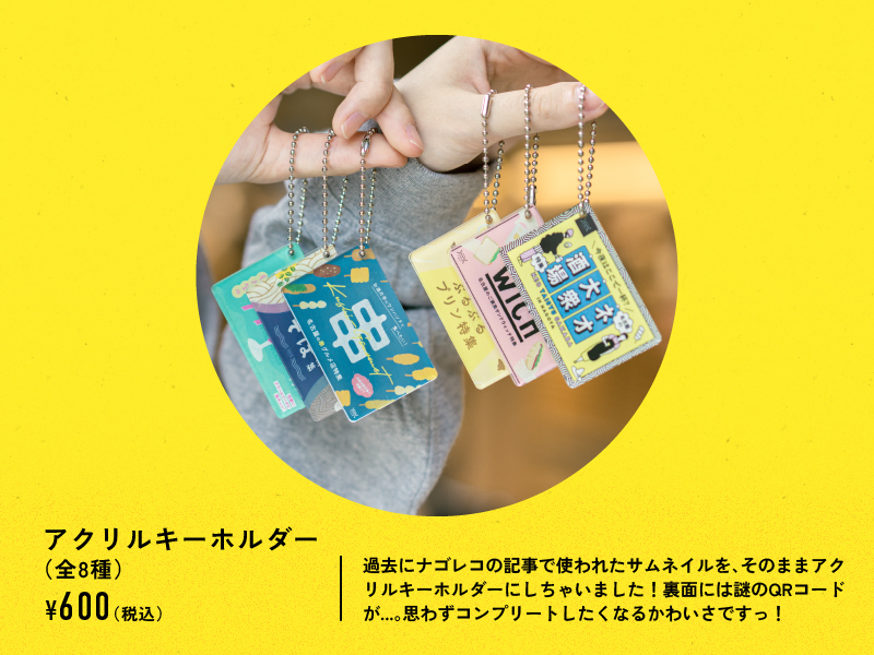 過去にナゴレコの記事で使われたサムネイルを、そのままキーホルダーにしちゃいました!